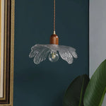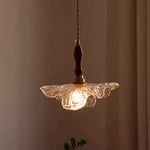 Japanese Wabi-Sabi Glass Pendant – Vintage Wooden Bedside Light