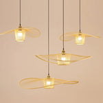 Tyalez Waving Bamboo Vintage Woven Wicker Handmade Hat Rattan Pendant Light
